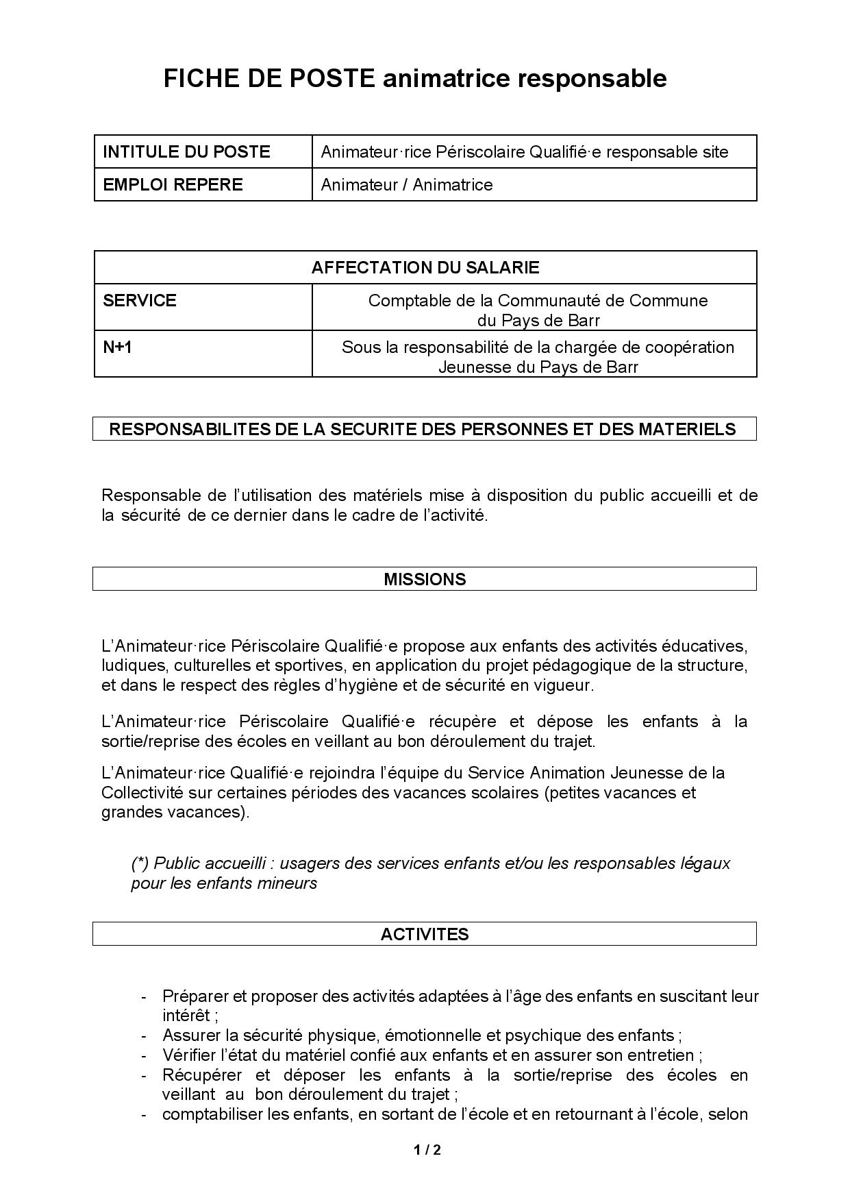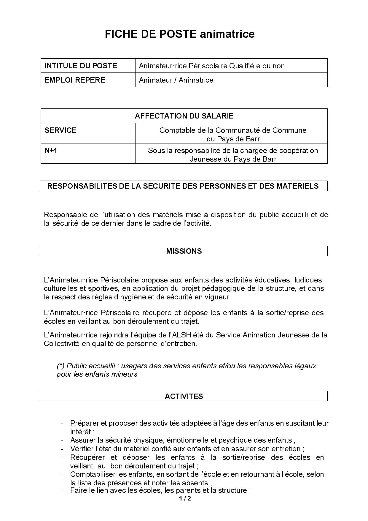 Candidatures (CV + lettre de motivation) Ă adresser avant le 24 aout Ă : s.delaplace@paysdebarr.fr
