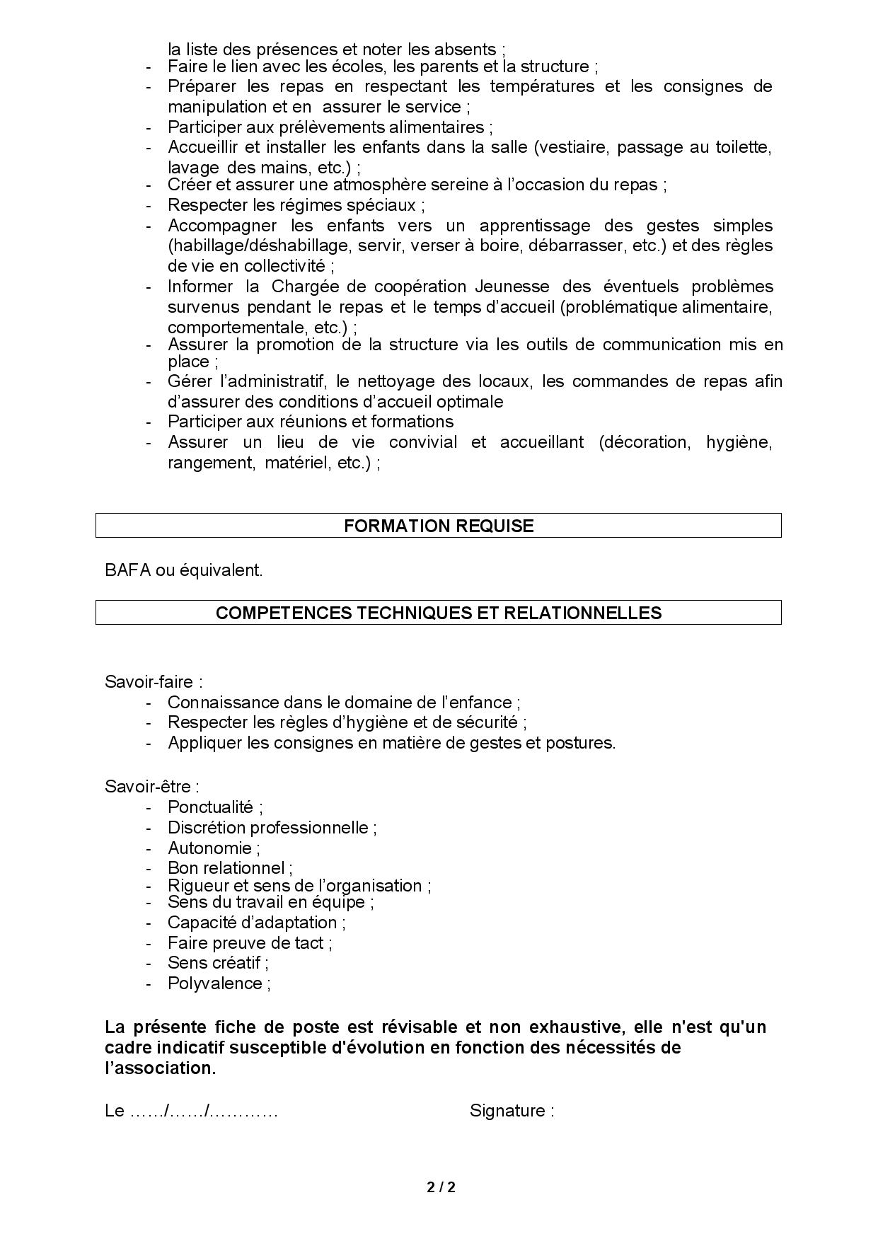 👉 2 animateurs ou animatrices pour encadrer les enfants durant la pause méridienne.