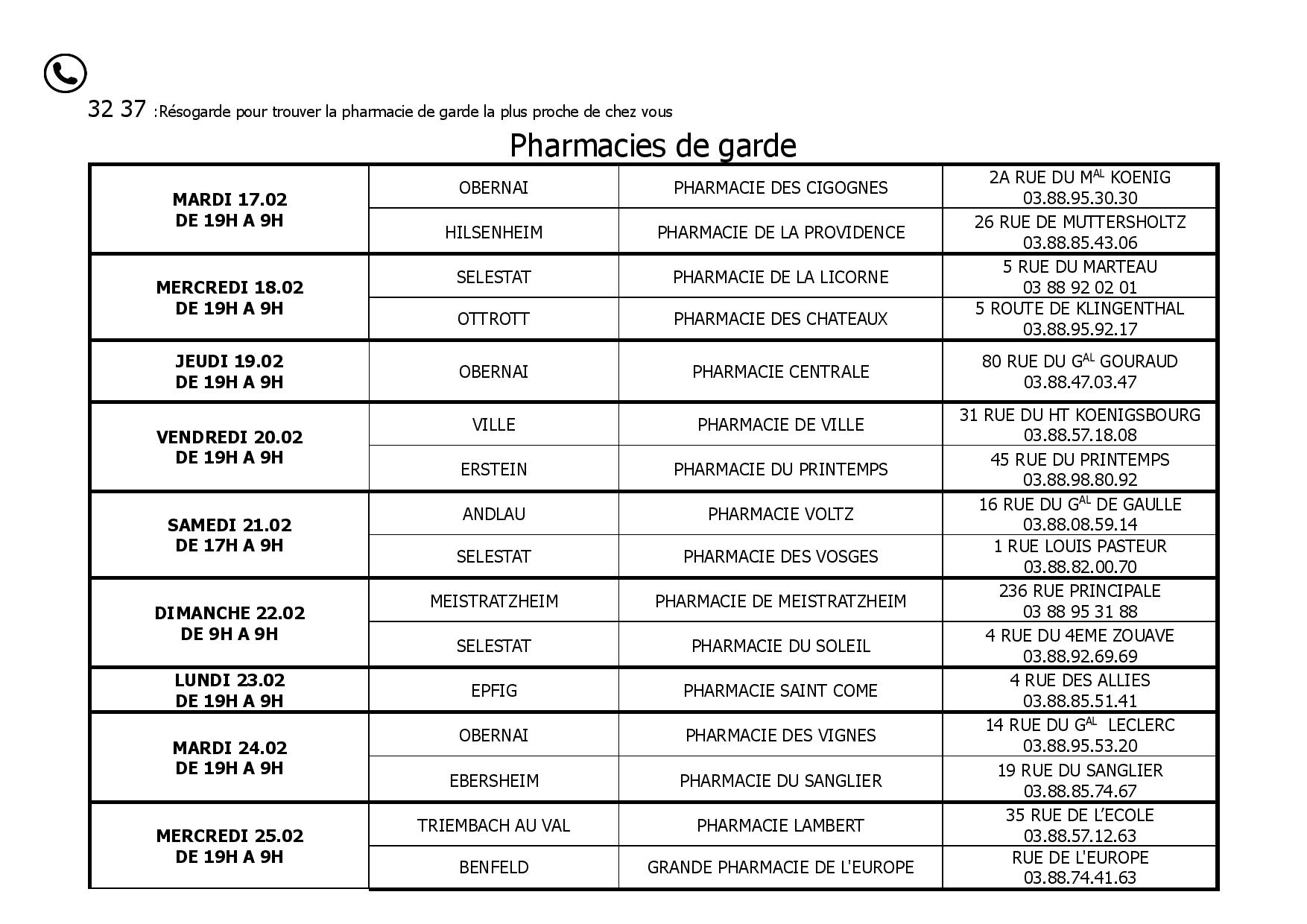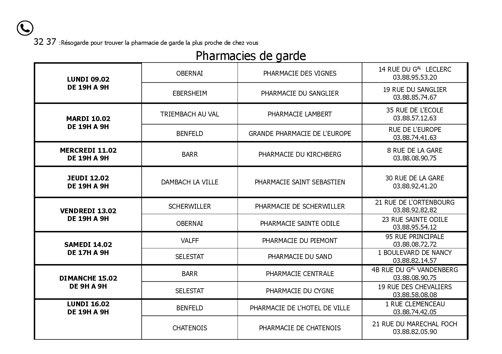 Pharmacies de garde en février